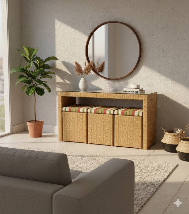 Esta peça foi confeccionada com eucalipto rosa e fibra sintética, e mede 40x120x80